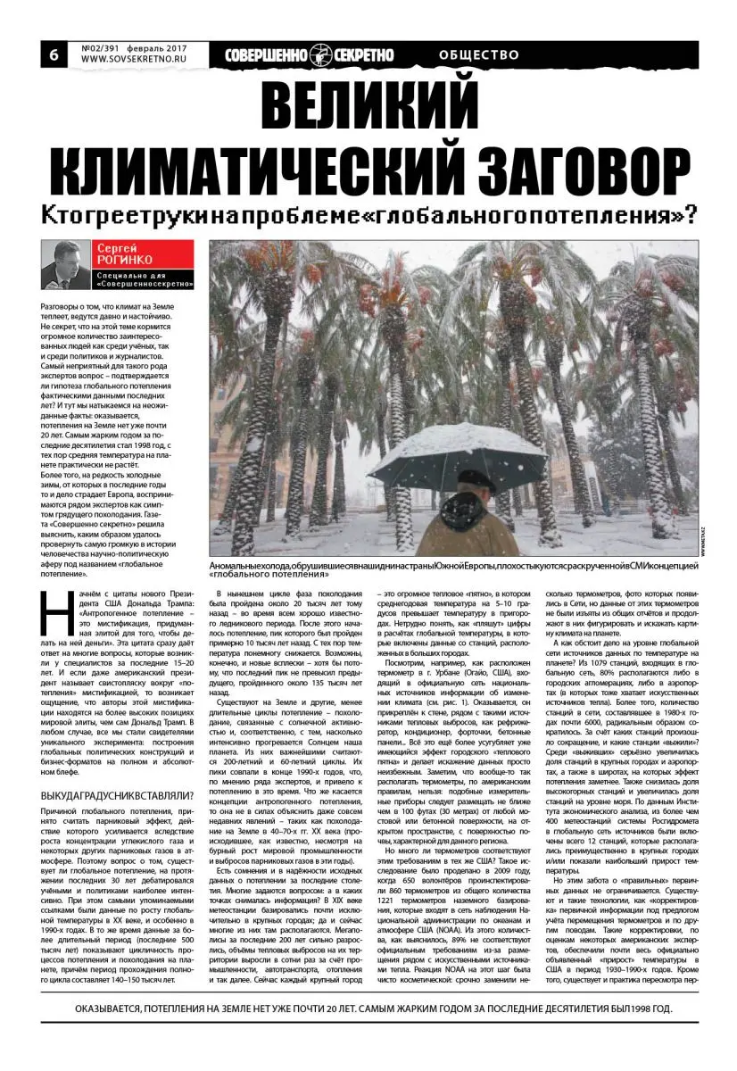 Более того, на редкость холодные зимы, от которых в последние годы то и дело страдает Европа, воспринимаются рядом экспертов как симптом грядущего похолодания. Газета «Совершенно секретно» решила выяснить, каким образом удалось провернуть самую громкую в истории человечества научно-политическую аферу под названием «глобальное потепление».