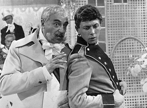 – Первые мысли о театре возникли у меня в восьмом классе, когда я стал заниматься в школьной самодеятельности под руководством профессионала, бывшего актёра Театра Корша Павла Тихоновича Свищева. Именно он впервые доверил мне роль в шпионском скетче «На старой даче», и мы с ним гастролировали. Чуть позже я стал завзятым театралом и, между прочим, не пропускал ни одного выступления Ираклия Луарсабовича Андроникова, который выступал не только как литературовед, но и как удивительно сочный и выразительный рассказчик со своими знаменитыми устными рассказами, в которых было много национального колорита. Именно тогда я попробовал воспроизвести его грузинский акцент, и годы спустя мне это пригодилось на съёмках «Кавказской пленницы». А затем я стал студентом знаменитого Театрального училища имени Б.В. Щукина. Страшно подумать – было это более 78 (!!!) лет назад