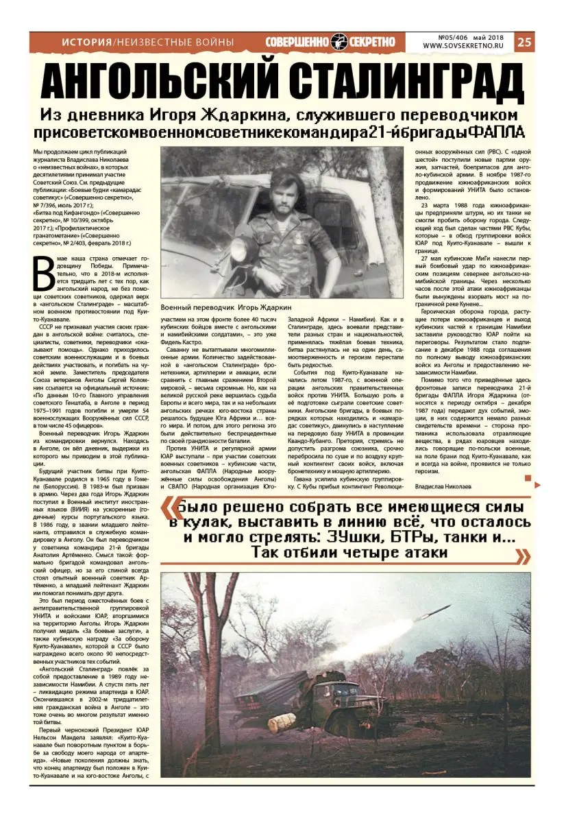 В мае наша страна отмечает годовщину Победы. Примечательно, что в 2018-м исполняется тридцать лет с тех пор, как ангольский народ, не без помощи советских советников, одержал верх в «ангольском Сталинграде» – масштабном военном противостоянии под Куито-Куанавале.