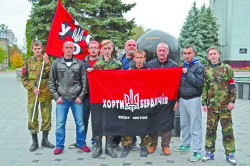 Отряд «Хорти», входящий в бердичевское отделение «Правого сектора». В центре Игорь Пирожок-Чирка, 2014