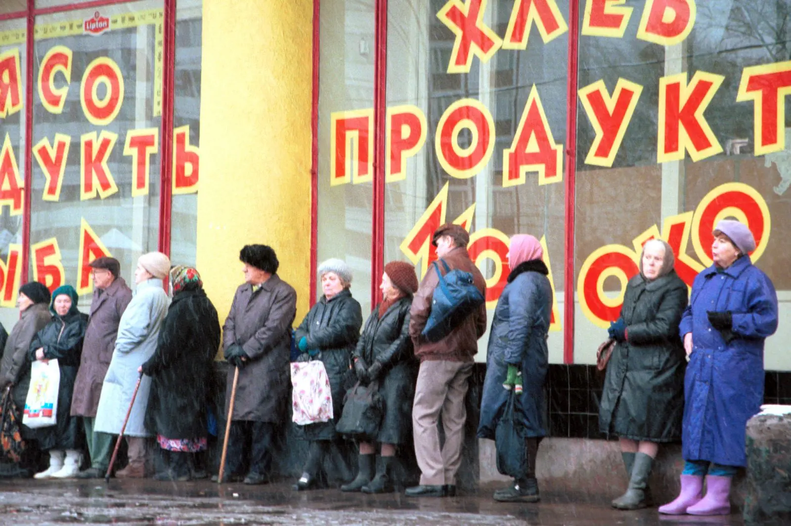 МОСКВА, 1998. ОЧЕРЕДЬ ЗА КОЛБАСОЙ В РАЗГАР КРИЗИСА