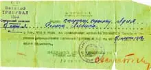 Справка военного трибунала о снятии судимости «за проявленное мужество», выданная старшему сержанту Семёну Арии в 1943 году |