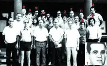 Члены Олимпийской сборной Израиля перед вылетом в Мюнхен. Цифрами на фотографии отмечены 11 спортсменов, захваченных в заложники и убитых. 1972 год |