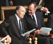 | Вверху: вице-президент США Джордж Буш предупредил новоизбранного президента Франции Франсуа Миттерана о возможном охлаждении двусторонних отношений. На фото внизу: советский шаттл «Буран» был проектом, отвергнутым американцами | |