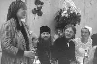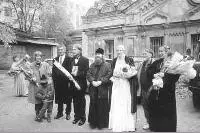 На снимке: мама и отец невесты – известный скульптор Вячеслав Клыков (слева); духовник о. Владимир (в центре); отец жениха – известный писатель Михаил Рощин и мама – Екатерина Васильева |