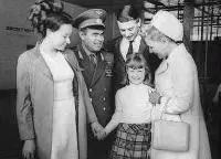 Екатерина Алексеевна со Светланой, внучкой Мариной, зятем Игорем и космонавтом Андрианом Николаевым |