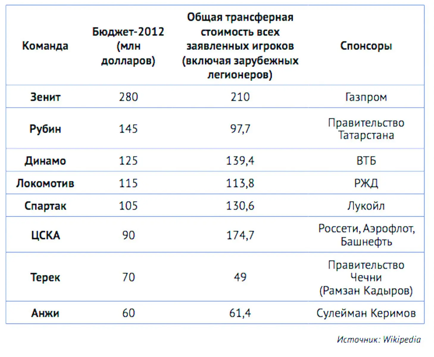 Бюджет «Зенита» в разы больше бюджетов остальных клубов российской премьер-лиги. (см. табл.1) И все это за наш с вами счет.