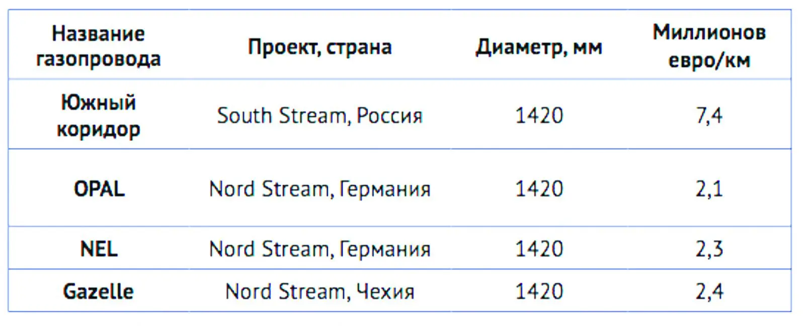 Средняя цена запускаемых проектов за километр трубы превысит 10 млн долларов. Среднеевропейская цена – 3 млн долларов за километр.