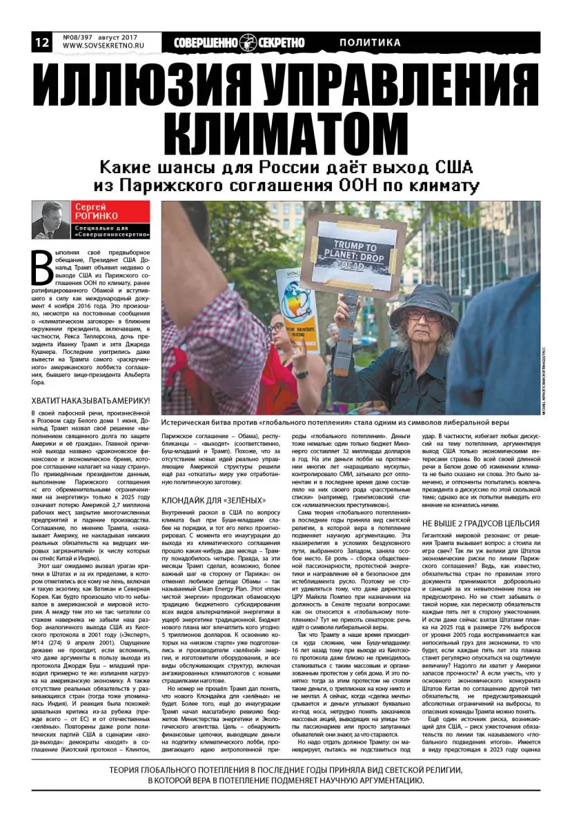 Выполняя своё предвыборное обещание, Президент США Дональд Трамп объявил недавно о выходе США из Парижского соглашения ООН по климату, ранее ратифицированного Обамой и вступившего в силу как международный документ 4 ноября 2016 года. Это произошло, несмотря на постоянные сообщения о «климатическом заговоре» в ближнем окружении президента, включавшем, в частности, Рекса Тиллерсона, дочь президента Иванку Трамп и зятя Джареда Кушнера. Последние ухитрились даже вывести на Трампа самого «раскрученного» американского лоббиста соглашения, бывшего вице-президента Альберта Гора.