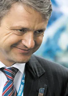 | Александр Ткачев и Олег Дерипаска, чей строительный холдинг имеет самые дорогостоящие подряды в рамках подготовки к Олимпиаде-2014 | |
