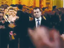| Человек, похожий на Сергея Цапка, на инаугурации Дмитрия Медведева, и подозреваемый в организации кущевской резни Сергей Цапок в сопровождении правоохранителей | |