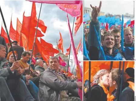 Что и говорить, мне они все равно милее и симпатичнее тех шкафоподобных долдонов, которые по соседству, на Майдане, в сотый раз выкрикивали что-то о верности социалистическому выбору, перемежая эти заклятия восклицаниями «Христос Воскресе!» и особо ставя Ющенко в вину то обстоятельство, что указ свой он издал на пасхальной неделе, а новые выборы, нехристь такой, назначил на Троицу. Там, на розово-голубом Майдане творилась настоящая вампука. А здесь я видел и слушал мыслящих, современных людей. Там, на Майдане, выступали почти исключительно по-русски, а я не понимал тот, уже мной забытый «советский» язык, на котором говорили тамошние ораторы. А здесь, на Европейской площади, говорили исключительно по-украински, а я понимал все, хотя украинского языка не знаю.
