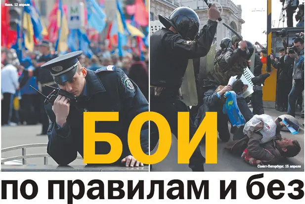 …14 апреля россиянам показали очередную серию российского реалити-шоу «Кремль за Стеклом». События в ней развиваются своим чередом: представитель московского ГУВД рапортует, что «задержаны самые агрессивные» участники шествия, среди них лидер Объединенного гражданского фронта, чемпион мира по шахматам Гарри Каспаров – ему вменен штраф в тысячу рублей. В Питере Владимир Путин в сопровождении Жана-Клода ван Дамма и друга Сильвио – бывшего итальянского премьера Сильвио Берлускони, изучает приемы силовой борьбы на турнире по боям без правил. В Москве ОМОН разминается в уличных боях с «несогласным