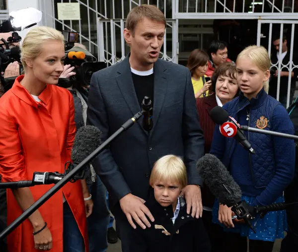 На фото: Оппозиционер, кандидат в мэры Москвы Алексей Навальный с семьей отвечает на вопросы журналистов во время выборов мэра Москвы (РИА «Новости»)