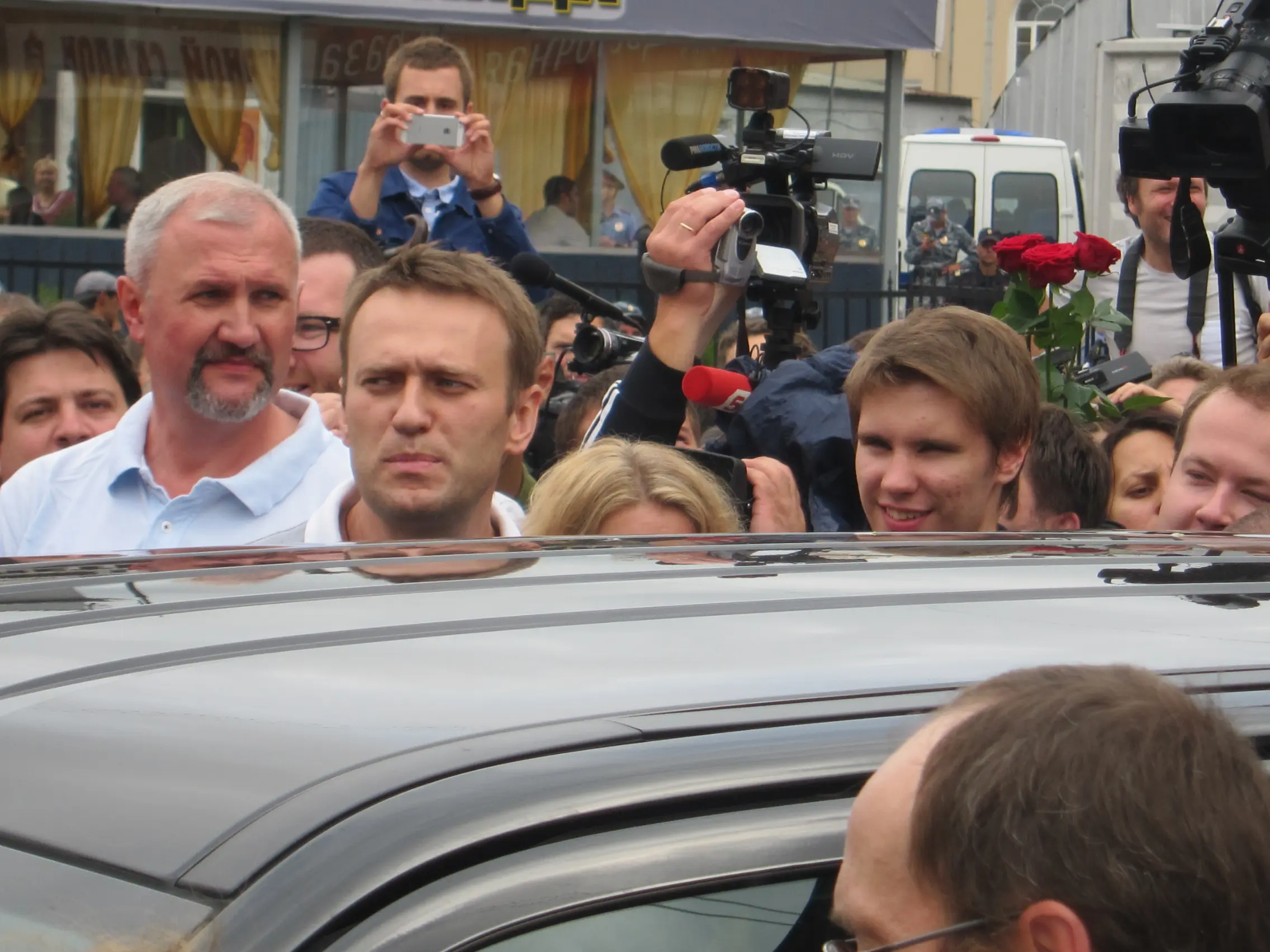 На видео: Толпа провожает Навального к машине