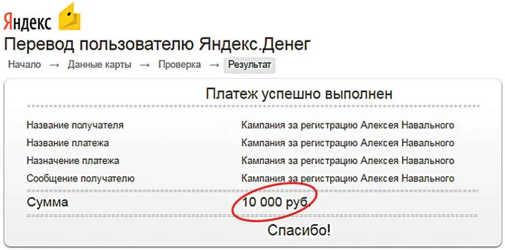 И тем не менее 16 декабря 2016 года я отправил на этот личный «Яндекс-кошелёк» Волкова редакционные 10 000 рублей, на минутку почувствовав себя таинственным инвестором в «молодого перспективного политика», каким любят описывать Навального наши заклятые друзья за океаном, и занял выжидательную позицию.
