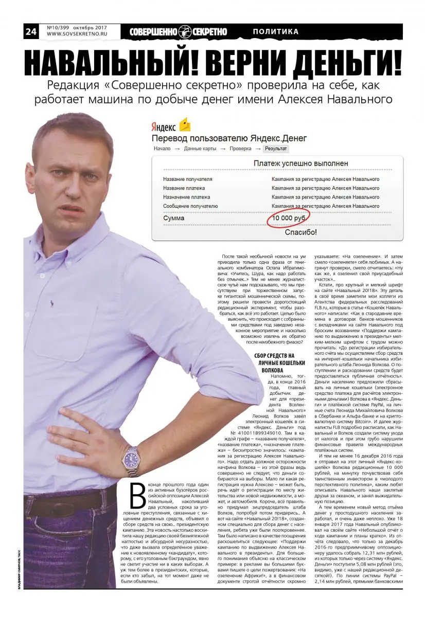 Редакция «Совершенно секретно» проверила на себе, как работает машина по добыче денег имени Алексея Навального
