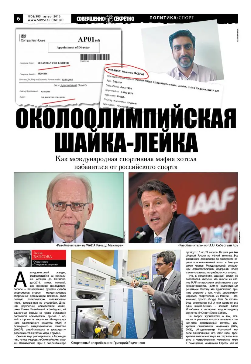 Итак, согласно документам официального реестра, на работу в фирму лорда Коу бывший специалист из конторы лорда Бэлла был принят в начале мая 2016 года. По странному совпадению, сразу же после этого Международная легкоатлетическая ассоциация и опубликовала одно из первых заявлений о грядущей дисквалификации российской сборной. Сложно поверить, что эти «совпадения» никак не связаны между собой.