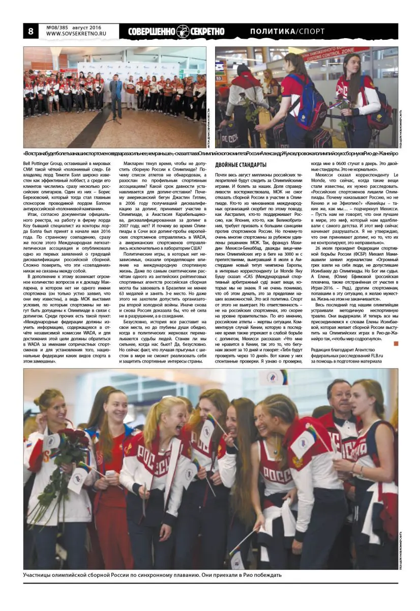 В дополнение к этому возникает огромное количество вопросов и к докладу Макларена, в котором нет ни одного имени спортсмена (он только устно заявил, что они ему известны), а ведь МОК выставил условия, по которым спортсмены не могут быть допущены к Олимпиаде в связи с допингом. Среди прочих есть такой пункт: «Международные федерации должны изучить информацию, содержащуюся в отчёте независимой комиссии WADA, и для достижения этой цели должны обратиться в WADA за именами сопричастных спортсменов и для установления того, национальные федерации каких видов спорта в этом замешаны».