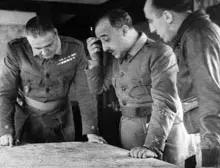 | Командующий Русской освободительной армией генерал Андрей Власов. Рядом: группа офицеров РОА, крайний справа – Григорий Ламздорф | |