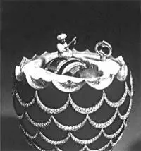 Внутри яйца «Сосновая шишка» – сюрприз в виде механического слоника с погонщиком |