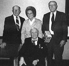 | В день 85-летия Моррис Чайлдс был награжден медалью за заслуги в области национальной безопасности. Он стал пятым человеком в истории США, получившим такую награду. Шестым стал его брат Джек, который, однако, не дожил до знаменательного дня. На фото: с медалью Джека в руках – куратор братьев Чайлдс, агент ФБР Карл Фрейман | |