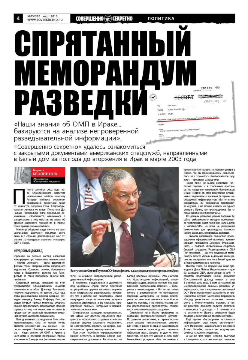 Тогда же Пауэлл заявил, что никогда не видел секретного меморандума военной разведки США и даже не подозревал о его существовании.