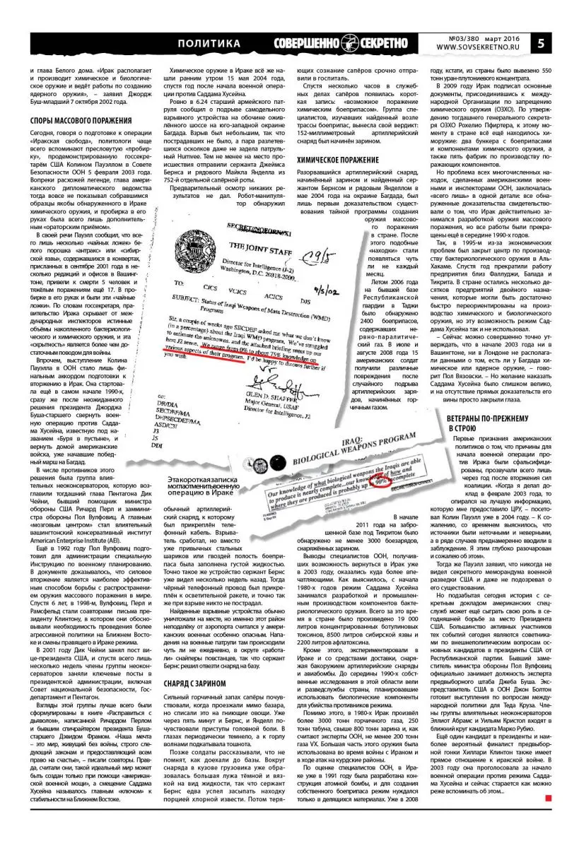 «Совершенно секретно» удалось ознакомиться с закрытыми документами американских спецслужб, направленными в Белый дом за полгода до вторжения в Ирак в марте 2003 года