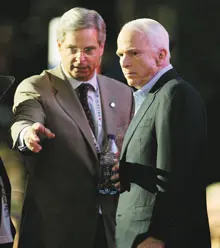 Тем не менее, деловые интересы советников Маккейна определенно создали ему проблемы. Помимо Рика Дэвиса, это Рэнди Шенеманн, последнее время часто упоминавшийся в российской печати как лоббист грузинского правительства, особенно после заявления Владимира Путина, что военные действия на Кавказе развязаны Тбилиси с целью «создать односторонние преимущества одному из кандидатов». Можно добавить, что Шенеманн до того, как стал сотрудником избирательного комитета Маккейна, работал по контрактам с правительствами Латвии, Македонии и Тайваня. Среди клиентов еще одного советника сенатора, Чарльза Блэка, значится погрязшее в коррупции правительство Экваториальной Гвинеи и московский «мозговой центр», которому покровительствует министр телекоммуникаций Леонид Рейман.
