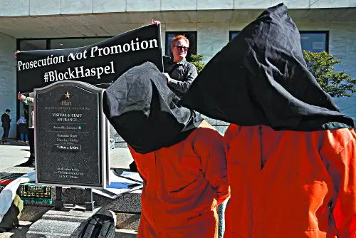 Кроме того, ровно год назад Европейский центр по конституционным правам и правам человека (ECCHR) обратился к прокурору Германии с требованием выписать ордер на арест Джины Чери Хаспел по делу о пытках подозреваемых в терроризме. По данным немецких правозащитников, она непосредственно участвовала в допросах террориста Абу Зубайды в секретной тюрьме «Кошачий глаз». Его не менее 83 раз топили в воде, фиксируя пытки на плёнку. Кроме того, Джина упоминалась в связи с делом Абд аль-Рахима аль-Нашири. По большому счёту только эти два реальных дела инкриминируются Хаспел на данный момент. При этом утверждают, что в самом цээрушном ведомстве за ней закрепилось прозвище Кровавая Джина (BloodyGina).