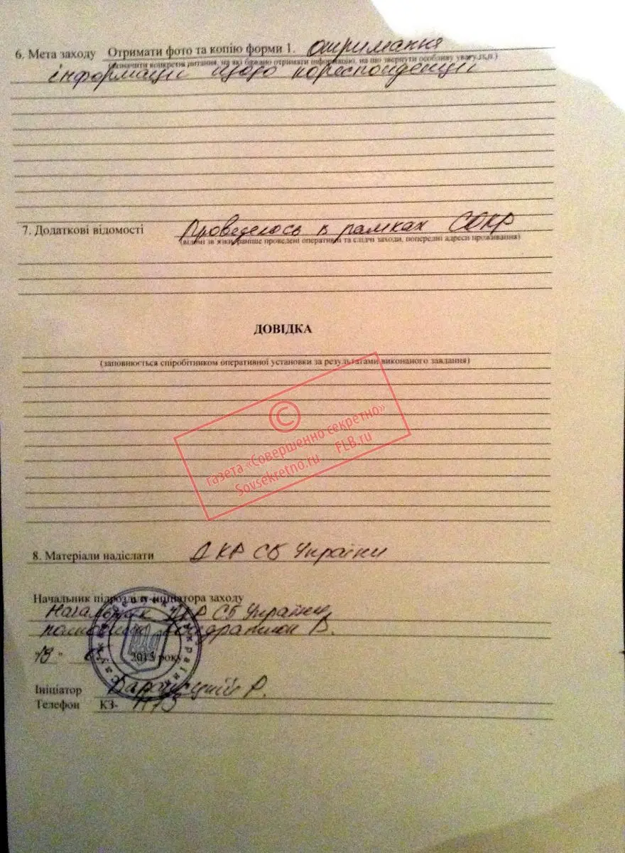 8. Материалы направить ДКР (департамент контрразведки. – Ред.) СБ Украины