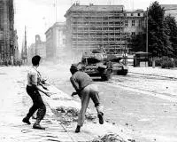 А в среду, 17 июня, дождь в Берлине начал поливать с самого утра. Но охладить накалившиеся к тому дню страсти он уже был не в силах. Верховный комиссар Владимир Семенов, которого Вячеслав Молотов окрестил «нашим гауляйтером в Германии», еще ночью был разбужен металлическим лязгом гусеничных траков по брусчатке – в Восточный Берлин вползали колонны советских танков. Там, где они группировались, прежде чем по приказу выдвинуться на рубежи вдоль секторальной границы и у важнейших административных зданий, их задранные в небо орудия казались верхушками непроходимого леса, в одночасье взметнувшимися посреди миллионного города в предрассветную мглу. Рождался день, который на востоке Германии тогда же был объявлен «Днем Х» и «попыткой фашистского путча», а на западе – Народным восстанием и Днем германского единства.
