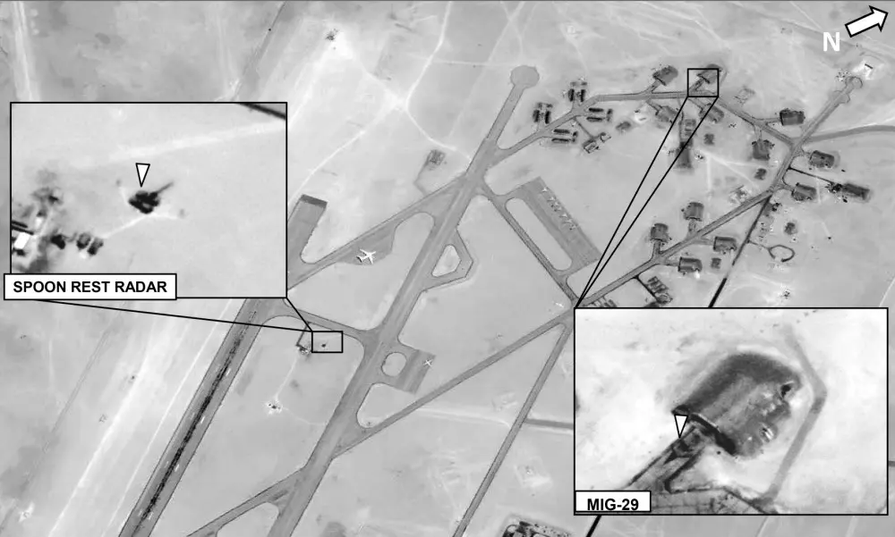Помимо этого, говорится о радиолокационной станции П-18 «Терек», по классификации НАТО называемой как «Spoon Rest». Но то, что выдается за РЛС, более походит на абстракцию из кругов и линий. К тому же, расположение РЛС посреди летного поля выглядит крайне непрофессионально.