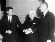 | Кандидаты в президенты и вице-президенты от Демократической партии на параде в Дейтоне (штат Огайо): губернатор Джеймс Кокс (слева) и Франклин Рузвельт. 1 ноября 1920 года | |