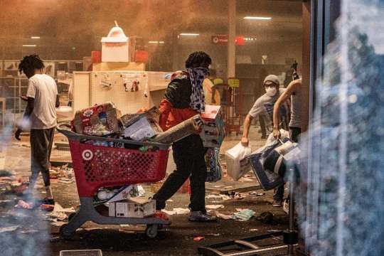 «Вот что происходит, когда в этом городе нет справедливости,- весело комментировала она происходящее в магазине Apple, из которого выбегали подростки с коробками смартфонов и наушников.- Бесплатные iPhones! Бесплатные iPhones!»