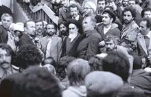 | 1 февраля 1979 года. Сторонники аятоллы Хомейни (в центре) окружили своего духовного руководителя во время его возвращения в Иран после 14 лет изгнания |
