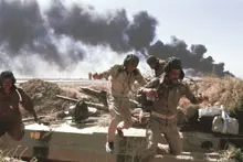 | Октябрь 1980 года. Иракские танкисты покидают свою боевую машину, спасаясь от налета иранских «Фантомов», поставленных Соединенными Штатами |