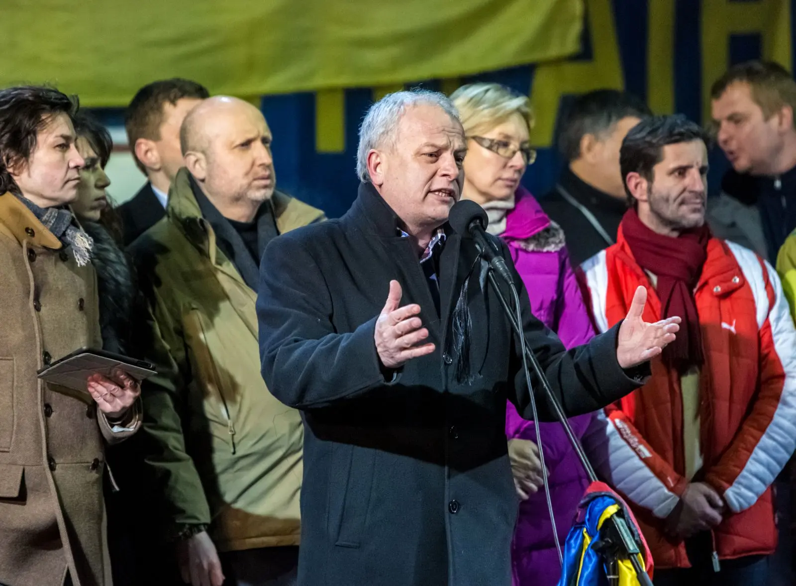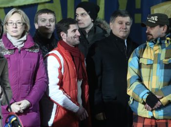 На фото: Народный депутат Верховной Рады Украины от партии «Батькивщина», глава Национального банка Украины Степан Кубив во время выступления на Майдане в Киеве
