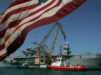 13 ноября за борт одного из кораблей выпал контейнер, в котором хранилась лопасть винта вертолета CH-53 с прибором на основе стронция-90. Из-за большой глубины, достать контейнер не удалось. Координаты места происшествия засекречены. Известно, что в зону ответственности Пятого флота входят западная часть Индийского океана и Персидский залив.