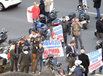 Байкеры перекрыли почти всю проезжую часть у дома по адресу Зубовский бульвар, 4. Они требовали переквалификации действий Некрасова на «превышение пределов самообороны» и освобождения его из-под ареста. Как отмечают свидетели, на Садовом кольце возникла существенная пробка. Некрасова обвиняют в убийстве члена другой байкерской группировки — Валерия Родителева (Белого) из «Ночных волков».. Тот погиб в стычке двух группировок в Зеленограде осенью 2012 г.