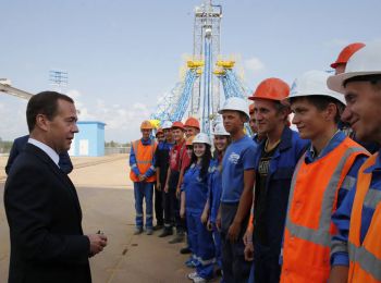 Премьер-министр Дмитрий Медведев 21 августа посетил строящиеся объекты космодрома Восточный в Амурской области, велел форсировать работы, а также впервые пообщался оттуда с российскими космонавтами, находящимися на Международной космической станции (МКС).