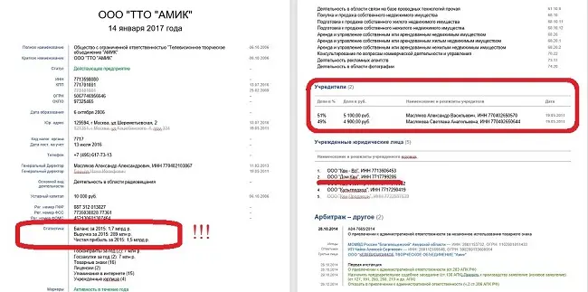 Публикация финансовой отчётности за 2015 год. «Детище» Масляковых ООО «ТТО «АМИК» декларировало чистую прибыль в размере 1,5 млрд руб. – неплохо, больше заявленной стоимости всего здания. Может, государству достанется что-нибудь, кроме налогов? Ан нет. ООО «Дом КВН», где 49% принадлежат Москве, а через неё Российской Федерации (не будем сейчас разбираться со сложным разделением собственности на федеральную и региональную),согласно бухгалтерской отчётности получило за тот же период убыток в размере 222,5 млн руб. 49% от этого убытка приходятся на Россию, то есть на нас с вами. Кажется, упомянутые 79 миллионов были не такой уж большой субсидией…