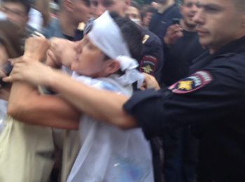 В 21 час на Старом Арбате начались массовые задержания участников прогулки, посвященной 50-летию экс-главы ЮКОСа Михаила Ходорковского. Людей выхватывали из толпы омоновцы и отправляли в автобус. Обстановка накаляется. Два атобуса уже уехали. Подъехал следующий. Полицейские прицельно задерживают тех, кто одет в майки с надписями в поддержку Ходорковского.