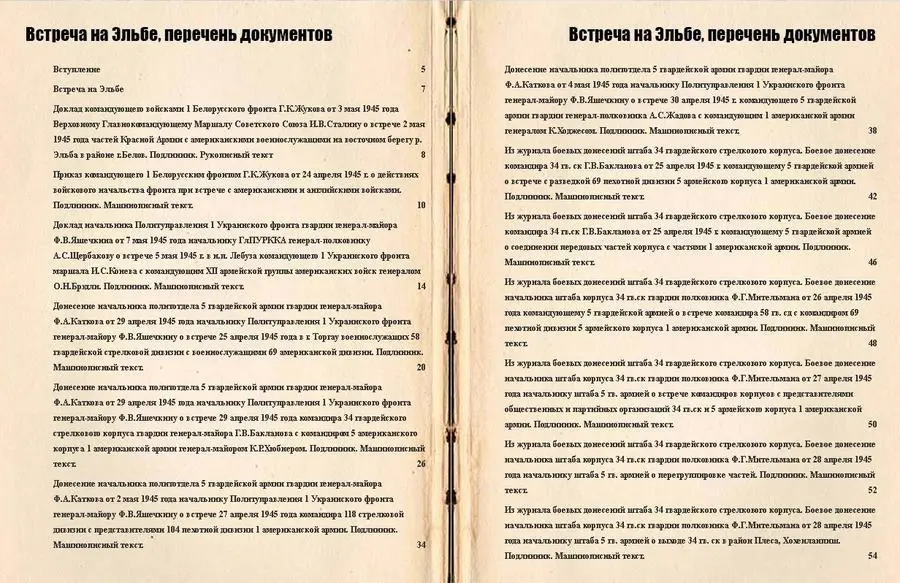 В числе размещенных документов ранее неизвестные доклады, приказы и указания командующих фронтами и армиями, выписки из журналов боевых донесений, письма, меморандумы, наградные листы, сводки и разнарядки, а также воспоминания и фотографии участников исторической встречи на реке Эльбе русских и английских моряков, участвующих в северных конвоях.