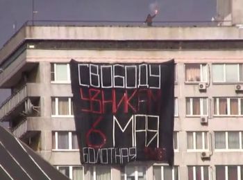 На Новом Арбате в Москве утром вывесили баннер в поддержку арестованных по «болотному делу». Растяжка с надписью «Свободу узникам 6 мая» свисала с крыши дома несколько минут, она закрывала несколько окон. По словам очевидцев, один из жильцов втянул её затем в окно.