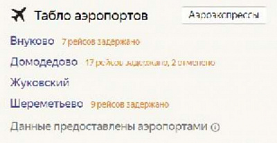 Согласно данным на 9:02 по мск, во Внуково задержаны семь рейсов, в Домодедово — семнадцать, а в Шереметьево — девять. Сообщается, что в Домодедово отменены два рейса в Сочи.