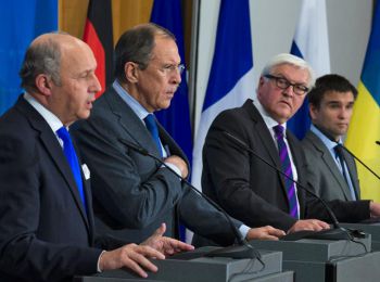 В Берлине в среду вечером прошла встреча руководителей министерств иностранных дел Германии, России, Украины и Франции. Министры договорились направить на российские контрольно-пропускные пункты на границе с Украиной наблюдателей ОБСЕ. Участники переговоров согласовали декларацию по урегулированию конфликта на юго-востоке Украины.