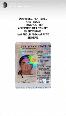 Внучка известного дагестанского поэта Расула Гамзатова получила израильский паспорт. Об этом Шахри Амирханова написала в социальных сетях.