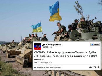 Представители Киева, ЛНР и ДНР подписали протокол о прекращении огня на востоке Украины с 18.00 мск, сообщается в Twitter самопровозглашенной Донецкой народной республики.