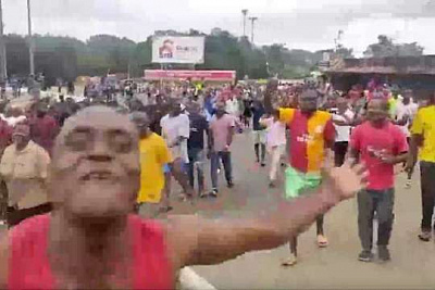 Когда Ондимбу избрали на второй срок в 2016 году в стране вспыхнули протесты, а в столице начались вооруженное противостояние. Тогда кандидат от оппозиции Жан Пинг также говорил о своей победе, а его сторонники подожгли здание национального парламента. Штаб соперника Ондимбы был окружен и обстрелян с вертолета силами президентской гвардии, а затем была атакована оппозиционная радио- и телестанция. Президент назвал оппозицию «небольшой группой, единственной целью которой является захват власти себе». После окончания конфликта были арестованы более тысячи человек.